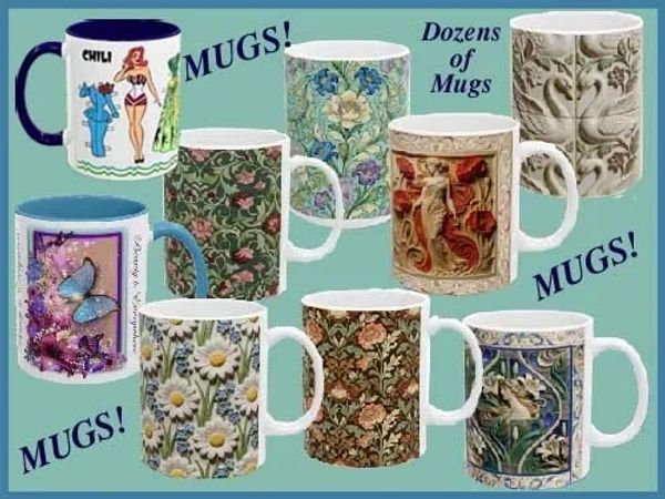 Here is just a smattering of the many mug styles we have to bring a touch of elegance, beauty, art, and history to your home, or to just have fun!